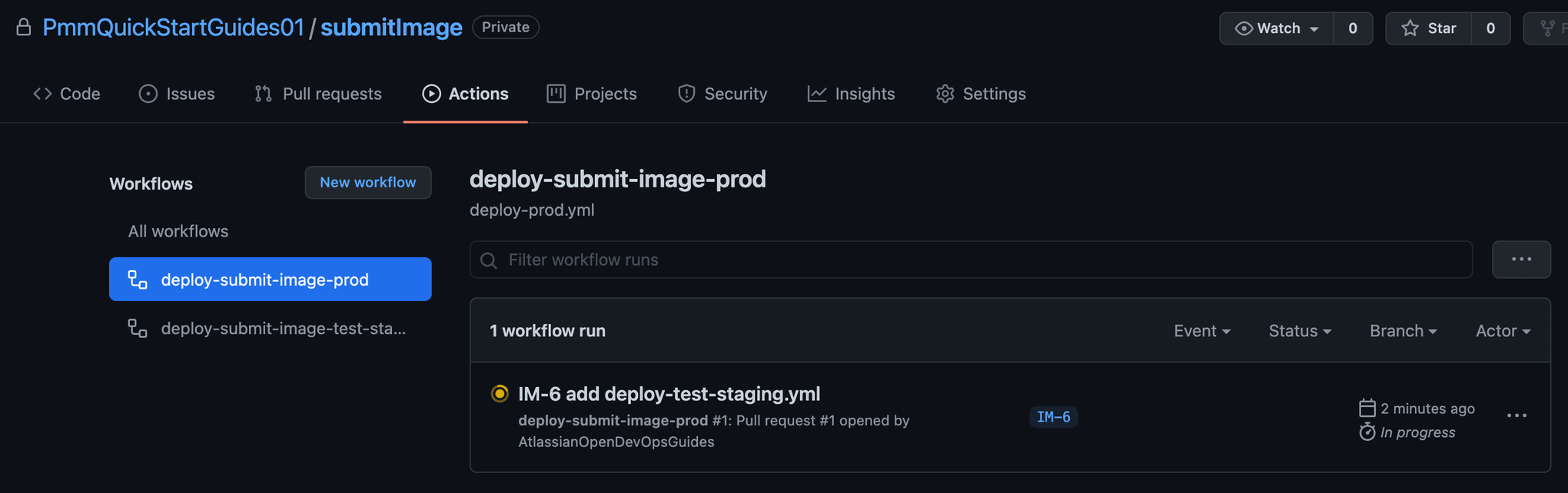 Haz clic en Actions (Acciones) para monitorizar la implementación del entorno de producción.