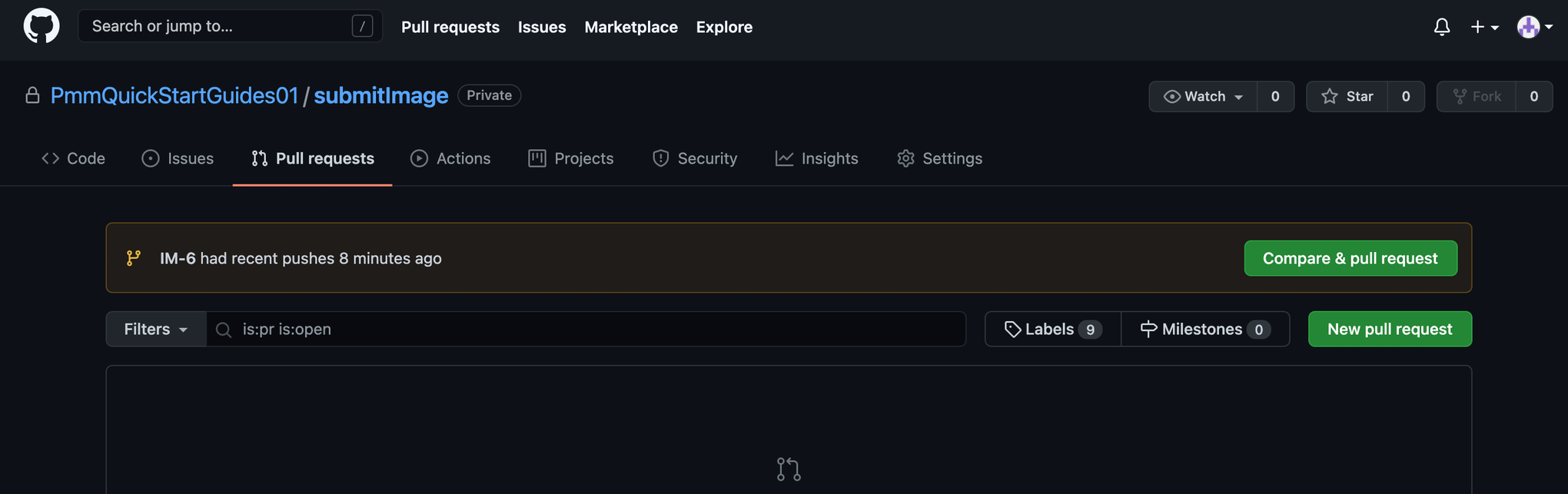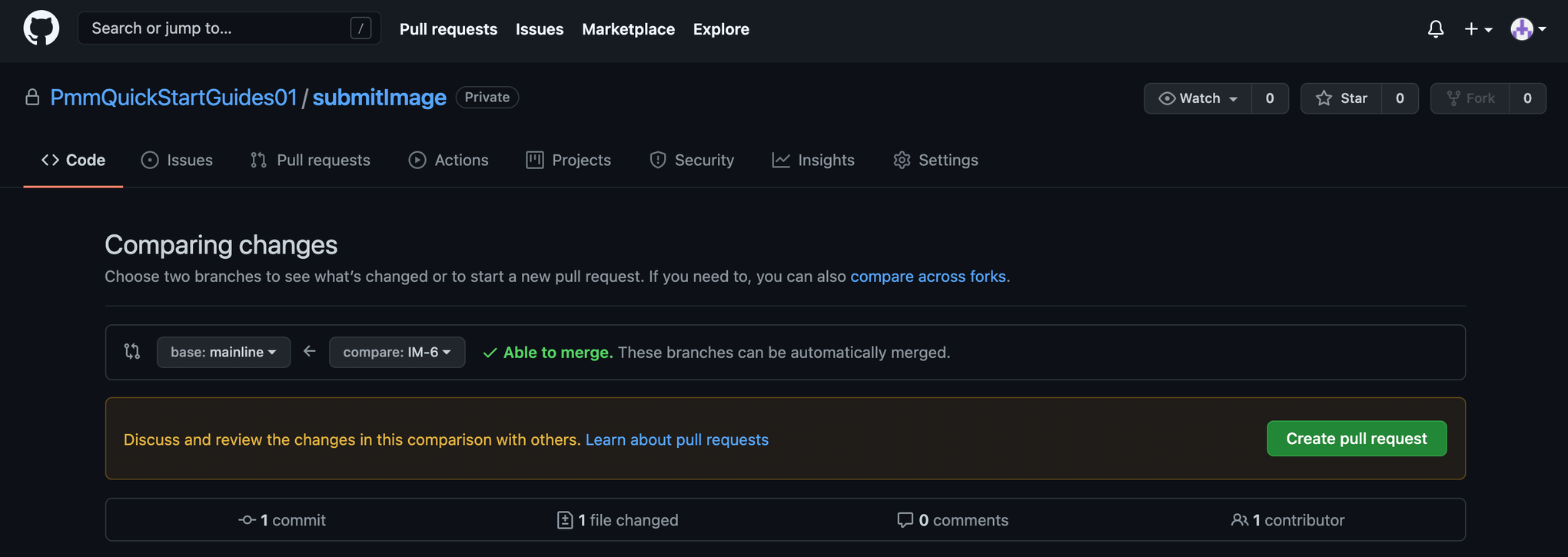 En tu terminal, ve al repositorio de SubmitImage y ejecuta lo siguiente para enviar tu código a GitHub.