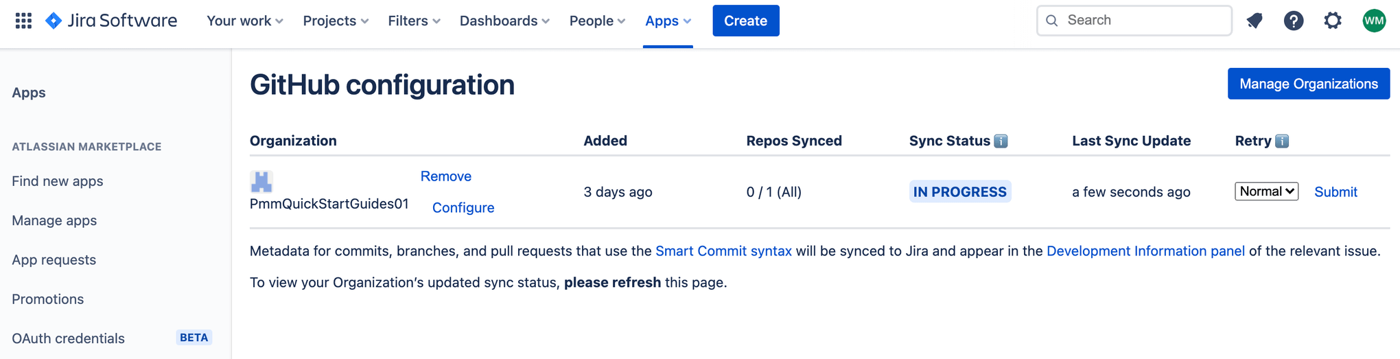 En Jira, haz clic en Tablero, Aplicaciones y GitHub.